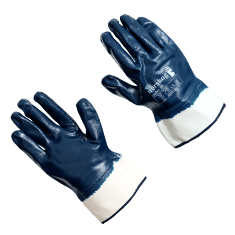 Nitrilhandschuh, doppelt nitrilbeschichtet. Es endet mit einer offenenManschette. Wasserdichtes und ölbeständiges Produkt, findet seine Anwendung bei schweren Arbeiten und in der Umweltölig.